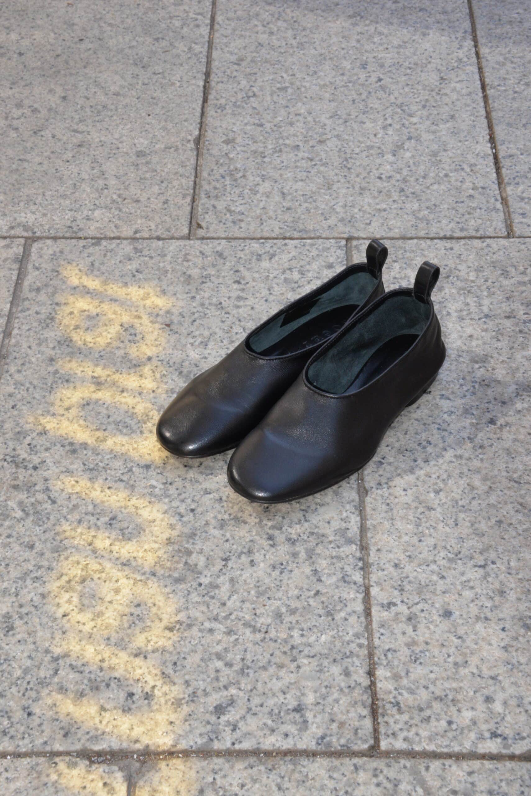 Ballerines en cuir vernis noir à bout rond, hauteur de tige 6,5cm