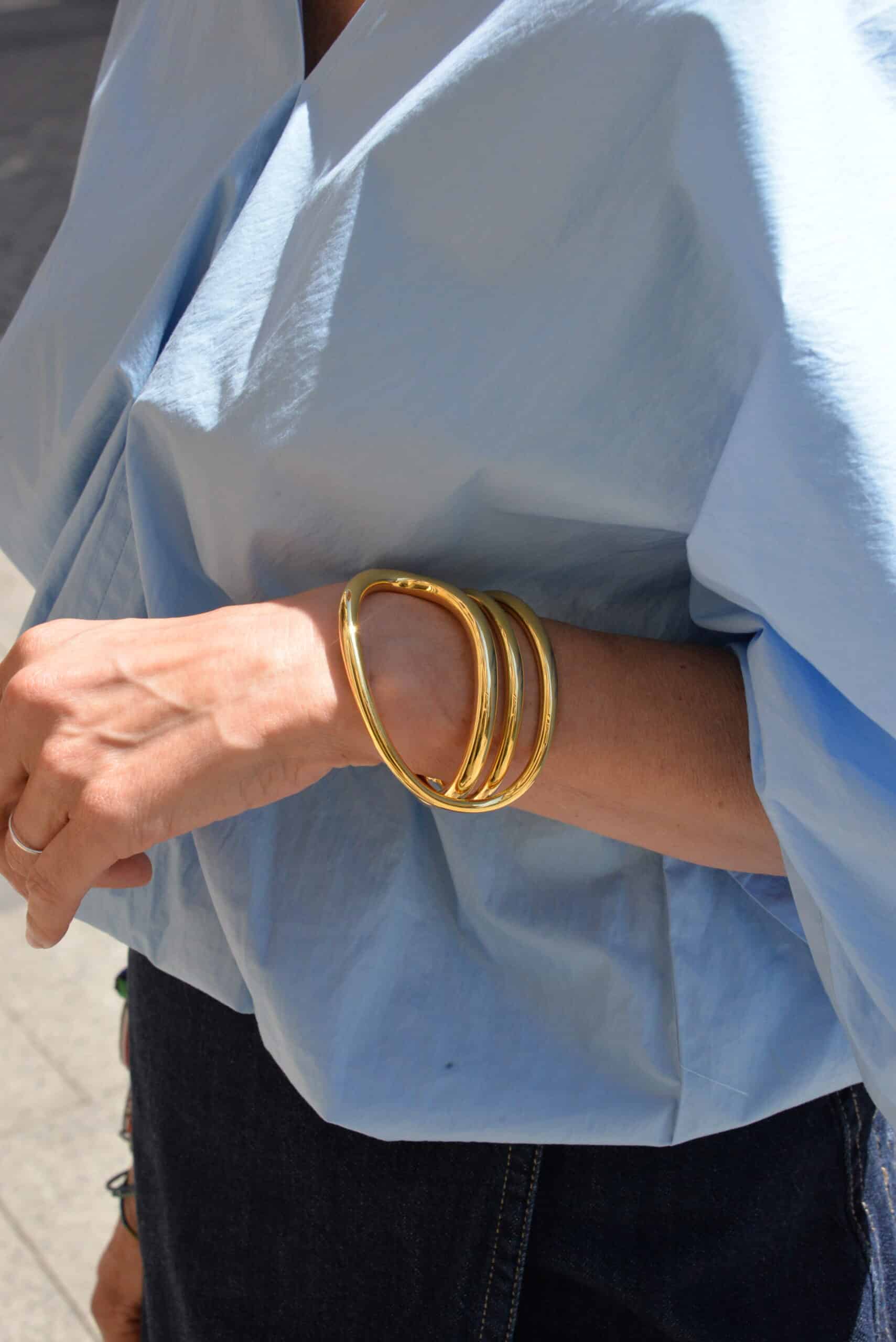 Issu de la maison parisienne Charlotte Chesnais, le bracelet Round Trip se caractérise par sa forme arrondie signature qui enlace le poignet. Il est confectionné en argent 925 recouvert d’or 18 carats (vermeil 5 microns).