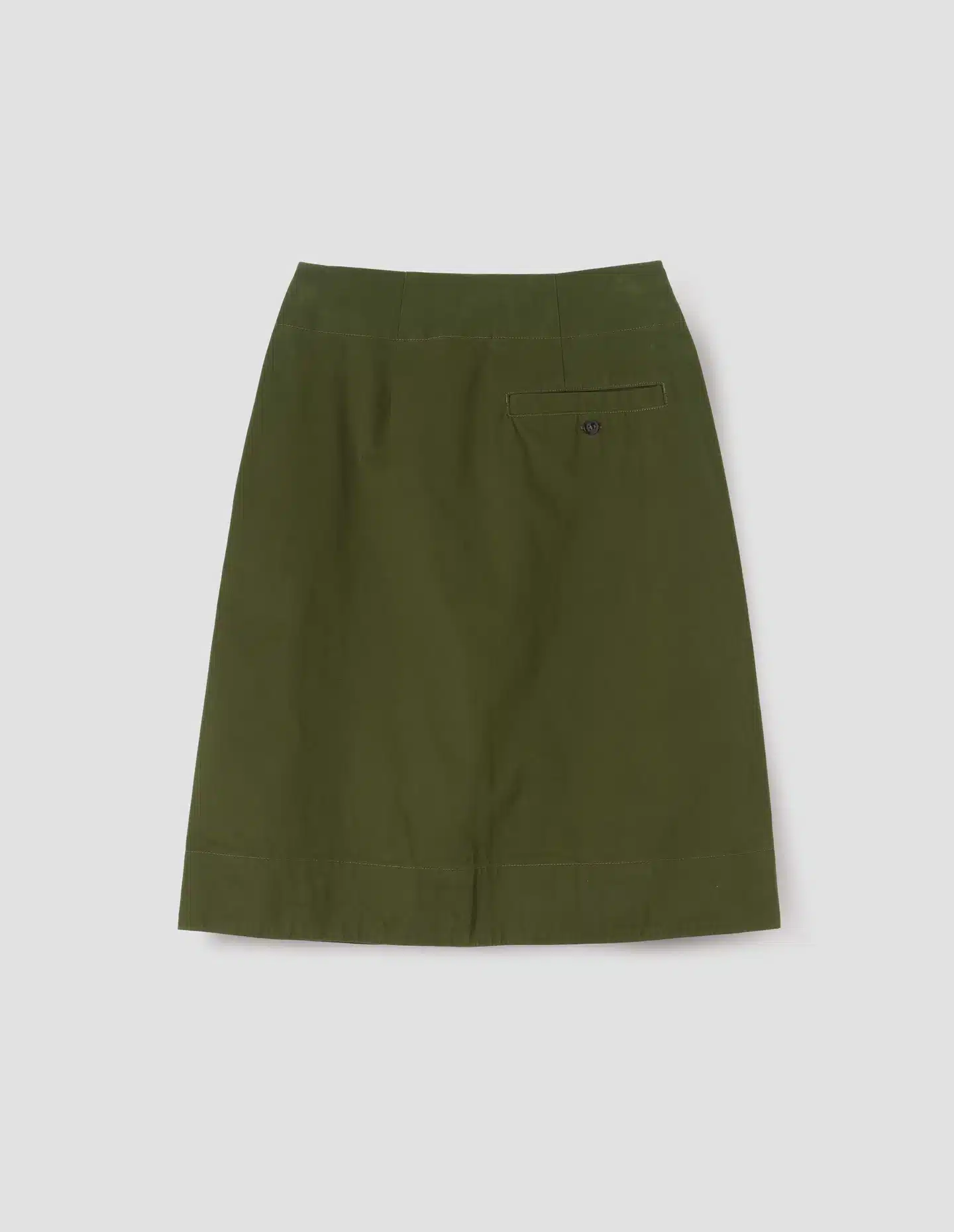 Issue de la collection automne/hiver de la ligne MHL by Margaret Howell, cette jupe porte-feuille est confectionnée dans un twill de coton avec un fini brossé et une main douce. Elle présente une coupe droite et une longueur midi.