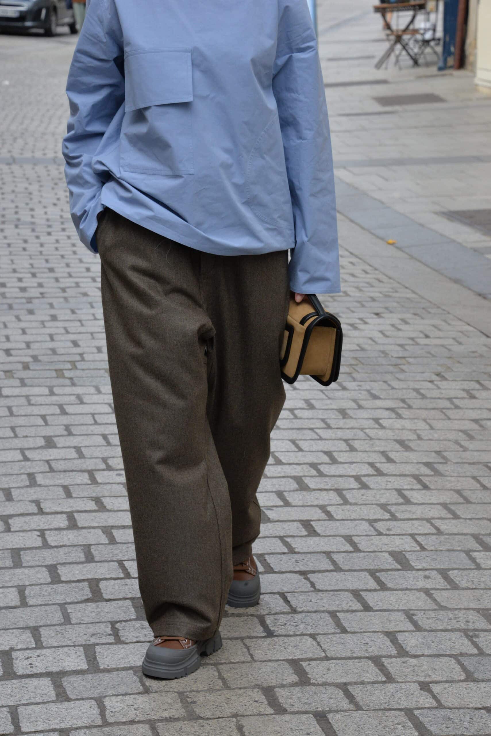 Issu de la collection automne/hiver de la marque belge Sofie d’Hoore, Pinot est un pantalon en laine mélangée. Il présente une coupe droite, large avec une fourche basse caractéristique de la marque.
