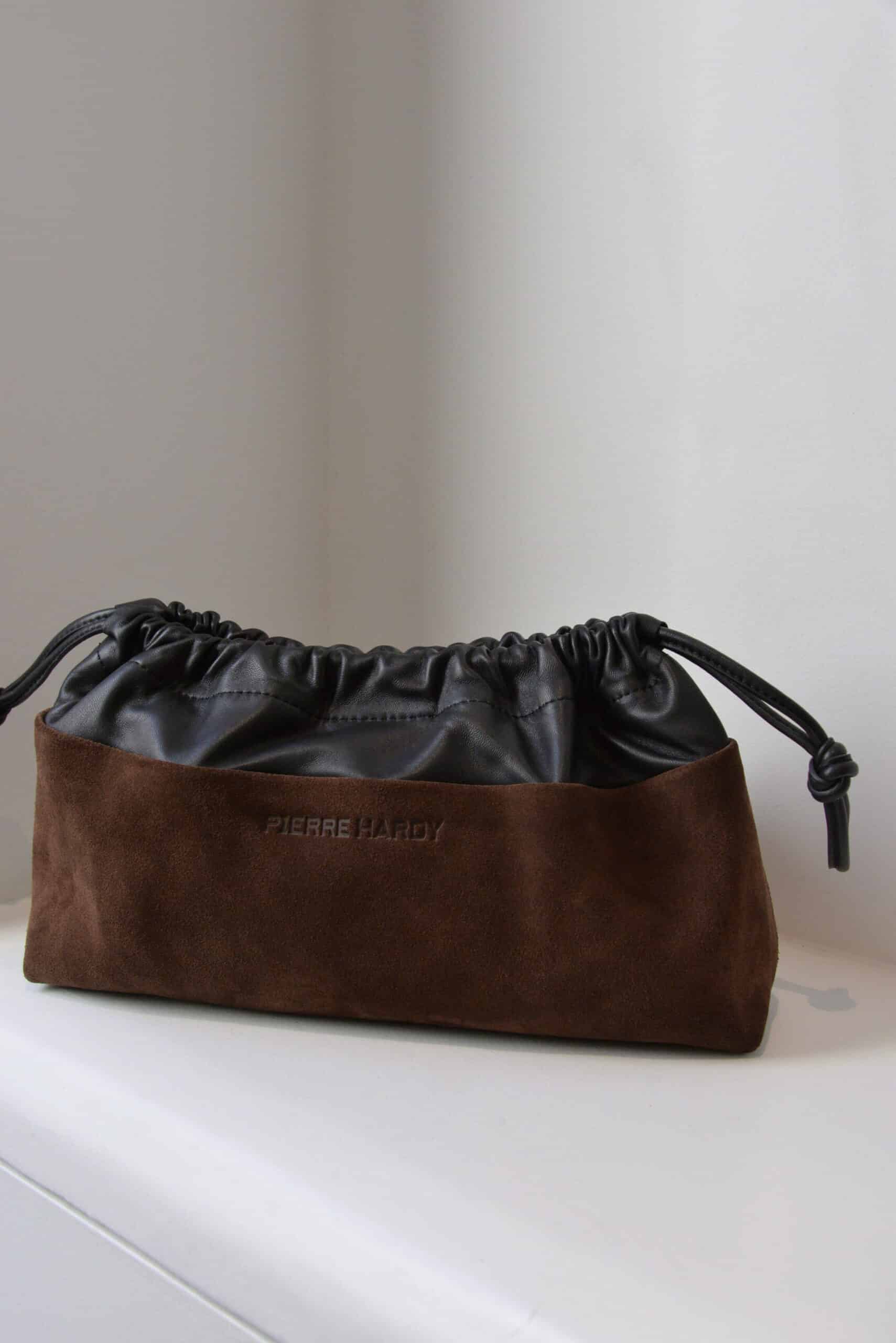 Issu de la collection automne/hiver de la maison Pierre Hardy, le sac Twin est une pochette au design minimaliste avec son cordon coulissant en cuir. Confectionnée en veau velours et cuir d’agneau, elle est conçue pour être pratique au quotidien avec sa bandoulière et sa pochette intérieure.