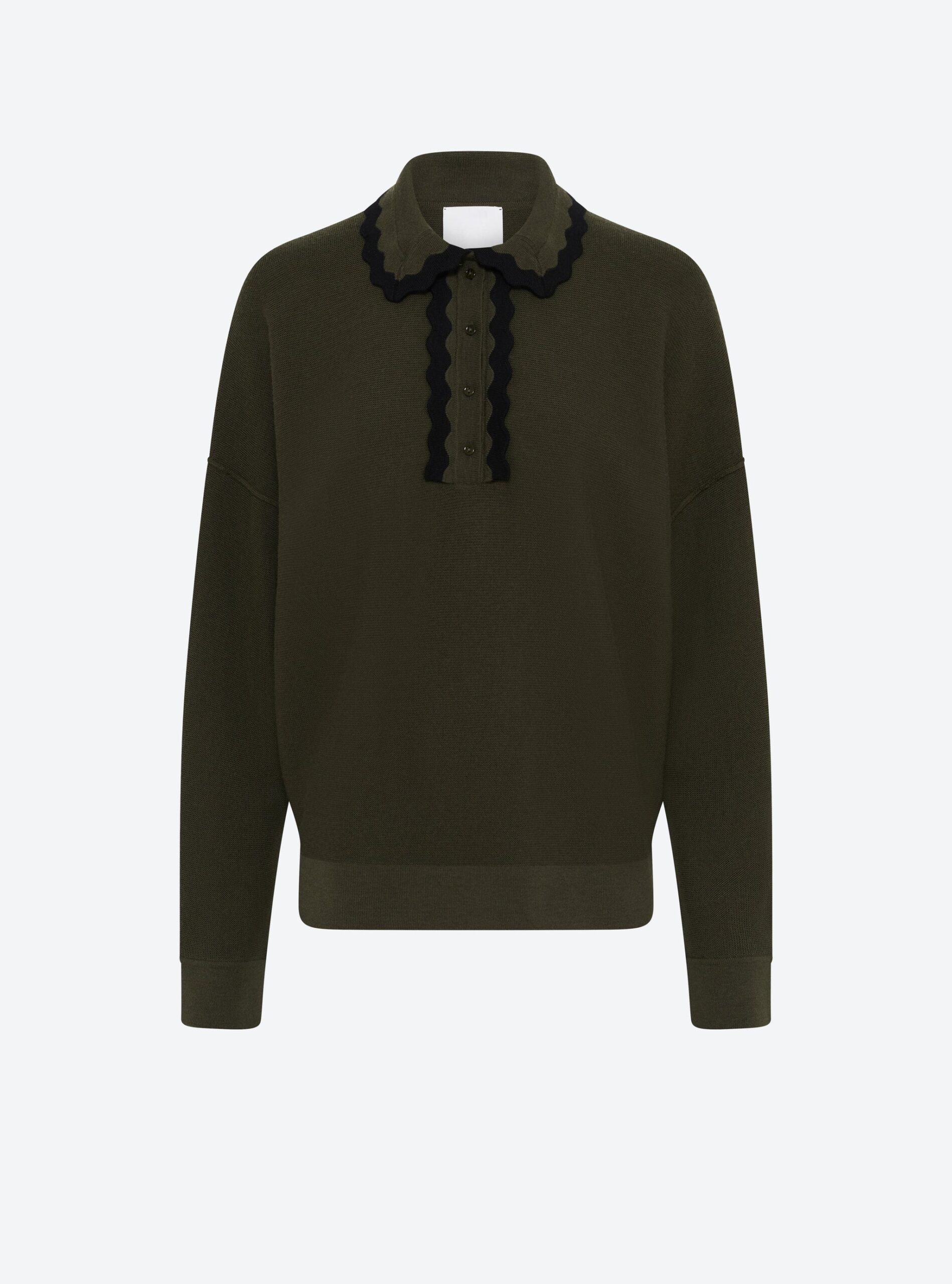 Issu de la collection automne/hiver de la maison molli, ce pull tricoté en Italie dans une pure laine extra douce se caractérise par sa coupe décontractée. Ce top en maille point mousse présente un col travaillé en crochet bicolore et des boutons ton sur ton.