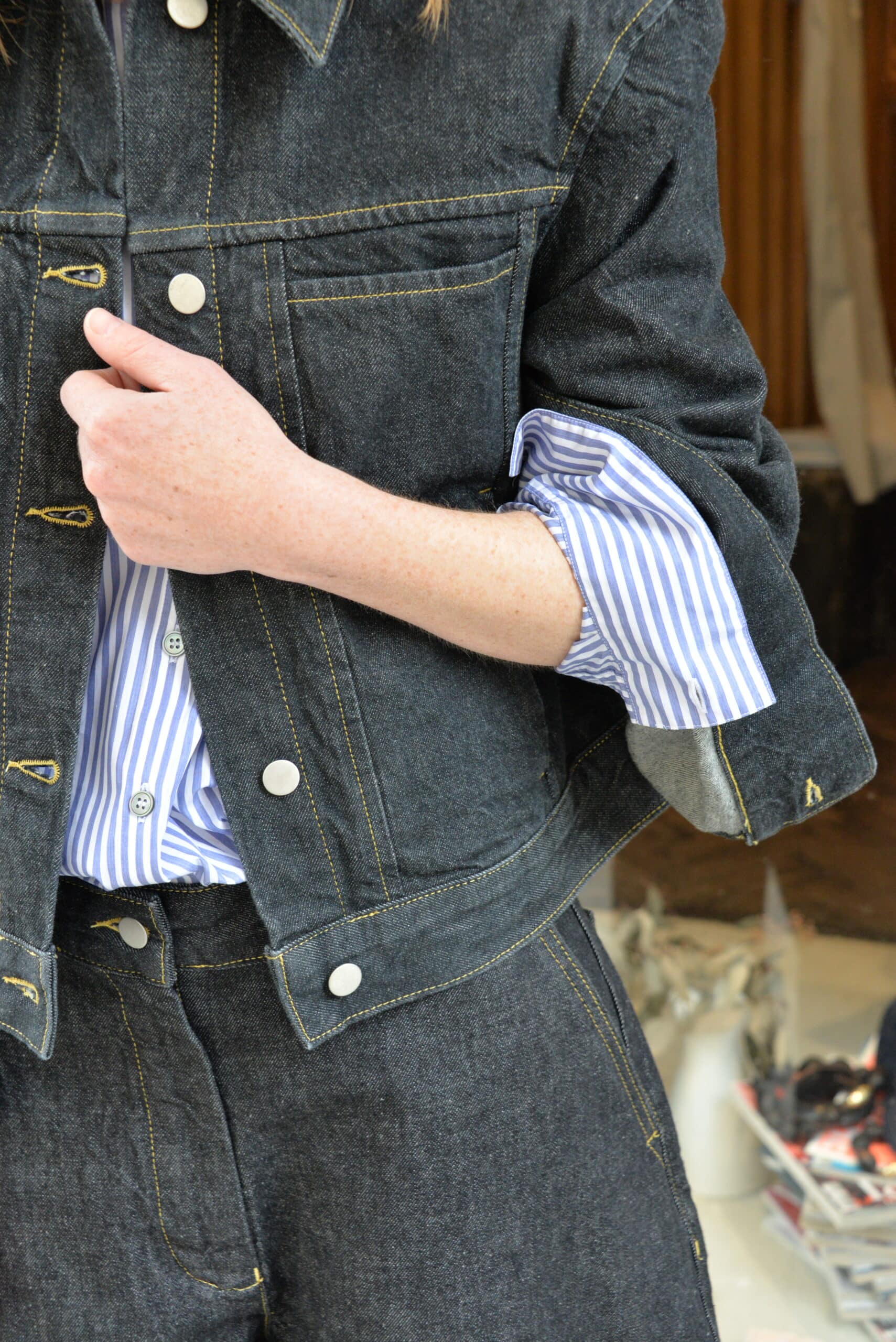 La veste Tahoe empreinte les meilleurs éléments de l’emblématique veste trucker et construit quelque chose de complètement nouveau. Le coupe est courte et étroite mais contrastée par la largeur des manches dessinant une silhouette particulière.